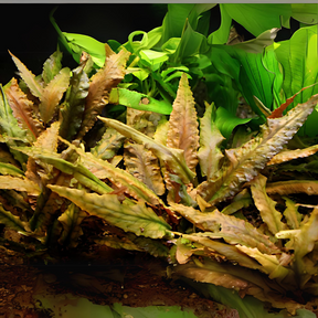 Cryptocoryne wendtii "Tropica" is a vibrant and hardy aquatic plant, celebrated for its broad, slightly ruffled green leaves that bring a lush, tropical feel to freshwater aquariums. Originating from Sri Lanka, this Cryptocoryne variant is perfect for both beginners and experienced aquarists, thanks to its low-maintenance nature and adaptability.