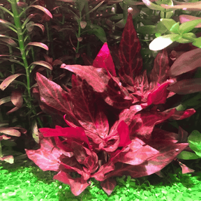 Alternanthera reineckii 'Rosanervig', also known as Red Alternanthera, is a vibrant aquatic plant prized for its striking pinkish-red leaves with a central white or cream-colored vein. Its bushy growth habit and colorful foliage make it a popular choice for midground or background planting in freshwater aquariums, adding a dramatic splash of color to aquascapes