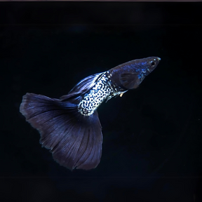 The Snake Skin Blue Black Guppy features a mesmerizing blend of deep blue and black with intricate snake-like patterns. Peaceful, hardy, and easy to breed, this stunning fish adds an exotic touch to any aquarium.