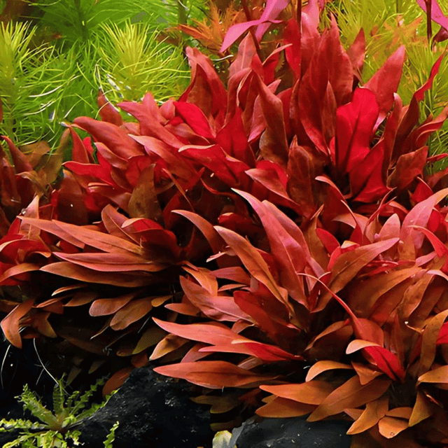 Vibrant Red Leaves: Boasts a captivating shade of red, adding a splash of color to your underwater landscape.