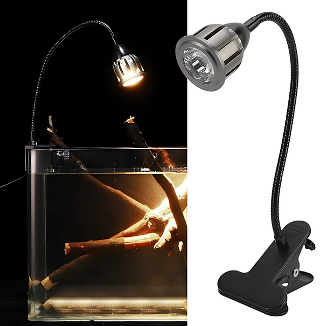 Illuminate your aquascape or showcase decor with the YEE Shoot The Animal Light LED 7W, a sleek and powerful lighting solution designed for precision and style. Its flexible gooseneck, strong clip-on base, and focused beam make it the perfect choice for aquariums, terrariums, and mood lighting setups.