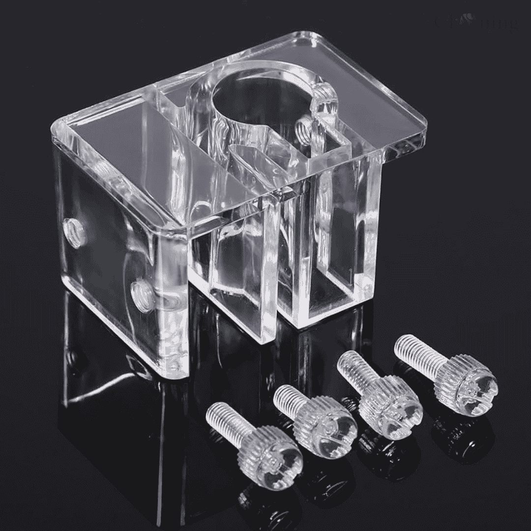 This Acrylic Aquarium Pipe or Hose Holder is a practical and transparent clamp designed to secure water hoses, filter inlet/outlet pipes, and siphon tubes firmly to the edge of an aquarium or bucket. Made from high-clarity, durable acrylic, it ensures your hoses stay in place during water changes, cleaning, and filtration work—preventing spills, slipping, or unexpected movement. With its adjustable screw clamp design, it fits securely onto most aquarium rims and supports common hose sizes, keeping maintenance neat, safe, and hands-free.