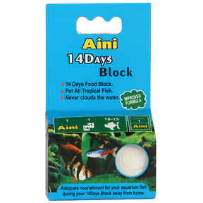 The AINI 14 Days Block is a slow-dissolving fish food block designed to provide consistent nutrition to your aquarium fish while you're away. Ideal for both freshwater and tropical fish, this block ensures your pets are feed for up to 14 days without water clouding.