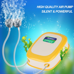 The SOBO SB-9905 is a dual-outlet air pump designed to deliver strong, consistent aeration in medium to large aquariums. With adjustable airflow control, low power consumption, and quiet operation, it’s a dependable choice for maintaining healthy oxygen levels in both freshwater and saltwater setups.