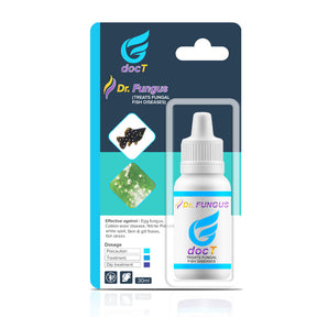 DocT Dr. Fungus is a powerful and fast-acting treatment formulated to combat fungal infections in freshwater and marine fish. This helps to treat visible white or cotton-like growths on the skin, fins, and gills—restoring your fish’s health and preventing the spread of infection.