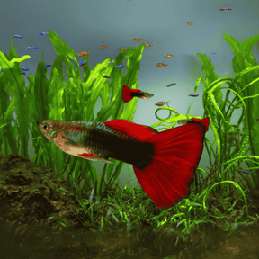 Bring home the Guppy Red Taxi—a fast-moving burst of scarlet elegance that will light up your aquarium with beauty and energy!