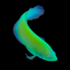 The Betta Fluorescent Green Plakat is a striking variety of Betta fish, prized for its vibrant, glowing metallic green coloration. Unlike traditional long-finned bettas, the Plakat variety has shorter, more compact fins, giving it a sleek, athletic look and making it an active, agile swimmer. Its shimmering green body often appears iridescent under light, making it a standout addition to any aquarium.