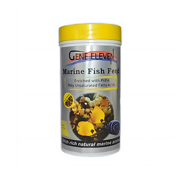 Gene Eleven Marine Fish Feed 100gm is a premium-quality fish food specially formulated for marine species, providing the essential nutrients required for their health, growth, and vibrant coloration. Designed to meet the unique dietary needs of saltwater fish, this feed ensures that your marine species thrive in their aquarium environment.