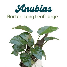 Anubias Barteri Long Leaf Large is a hardy and elegant aquatic plant, perfect for beginners and experienced aquascapers alike. Known for its long, lance-shaped, dark green leaves with a leathery texture, this robust plant adds graceful height and movement to freshwater aquariums. Variants like Anubias barteri var. glabra or “Broad Leaf” share this elongated form, making them an excellent choice for midground or background placement.