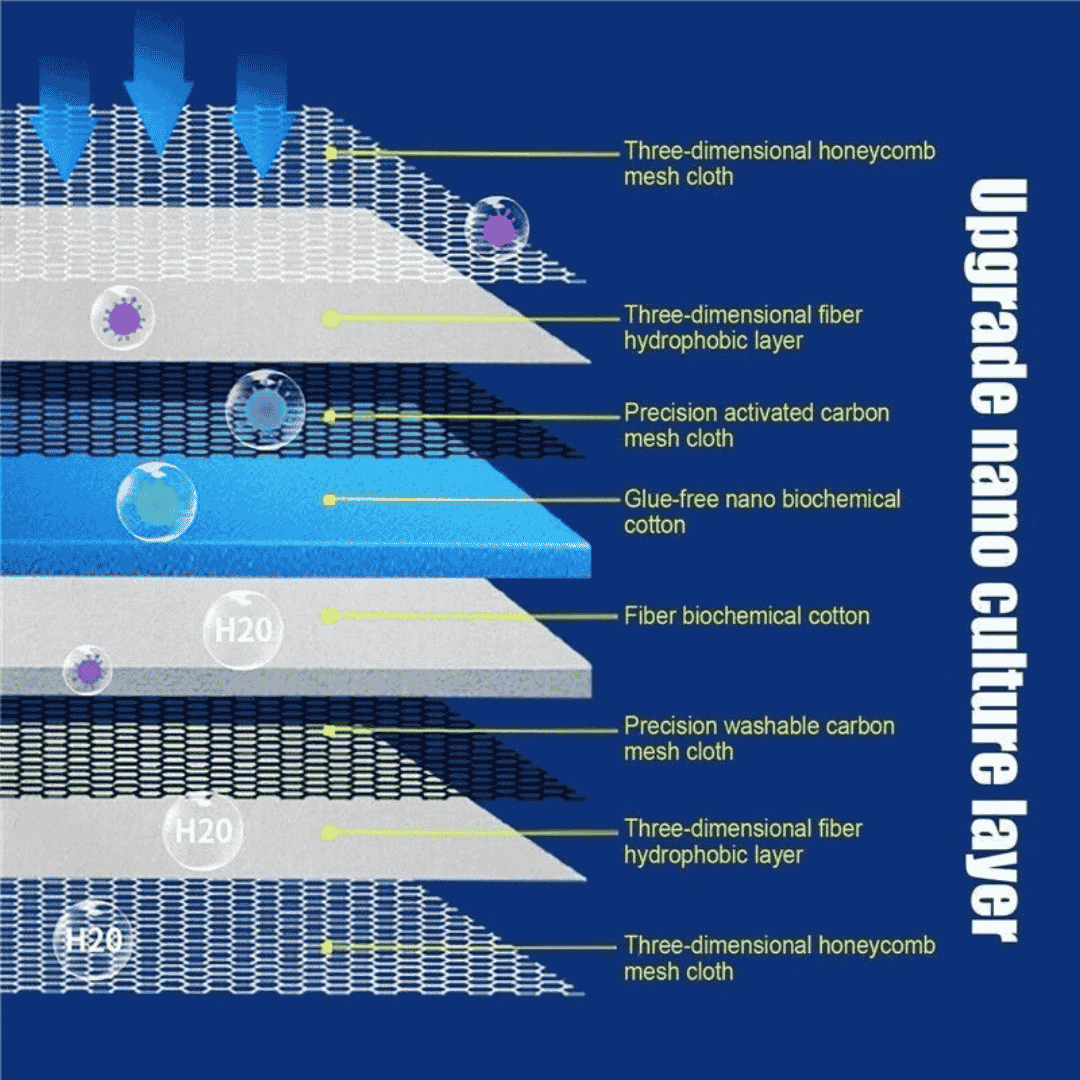 - 8D Multilayer Design: Eight layers with varying densities for comprehensive filtration.